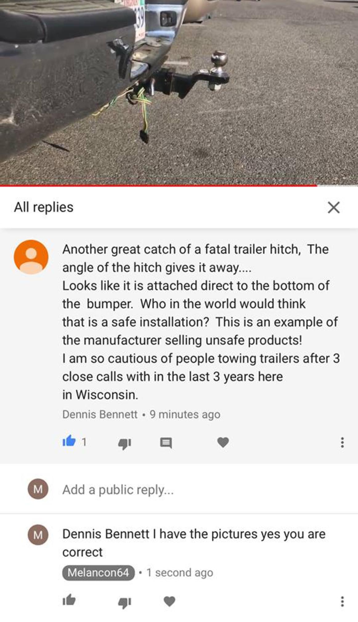 We have been trying to get the Hitch added to the inspection of vehicles and never in our minds would we think so many evil political leaders would be so against us trying to save lives.